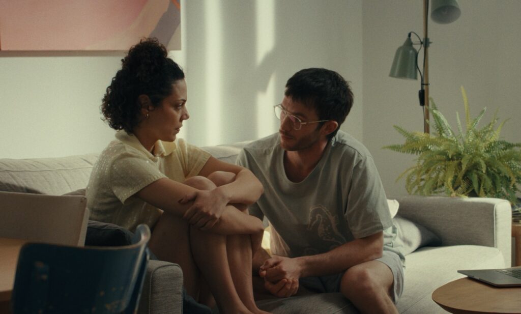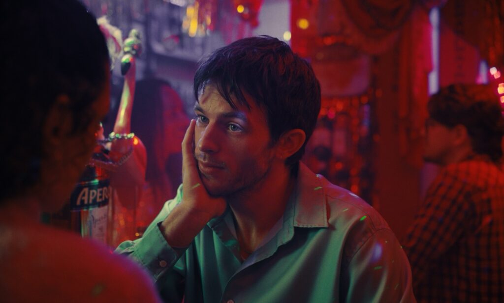 Die meiste Zeit fühlt man sich als Zuschauer:in dann wie ein heimlicher Beobachter. Die Kamera ist nur selten nah an den Charakteren dran aber die Bildausschnitte wirken, als wäre man Zeuge eines eigentlich viel zu intimen Moments. Je weiter man Jerome und Tanja kennenlernt, desto mehr versteht man dann auch den Gedanken dahinter. Eine distanzierte Beobachter-Haltung nehmen die beiden Hauptcharaktere nämlich ebenfalls ein. Tatsächlich kann man sich sogar ziemlich gut vorstellen, dass beide ihre Beziehung eher in einer Drohnenshot-Perspektive analysieren als mental wirklich in sonnigen Laken zu liegen oder Eis-essend durch einen Park zu laufen. In ihren Beobachtungen sind sie dann oft vermeintlich rational, sehen fast alles ironisch und sich selbst, ihre Beziehung und Umgebung auf einer Art erhabenen Metaebene.