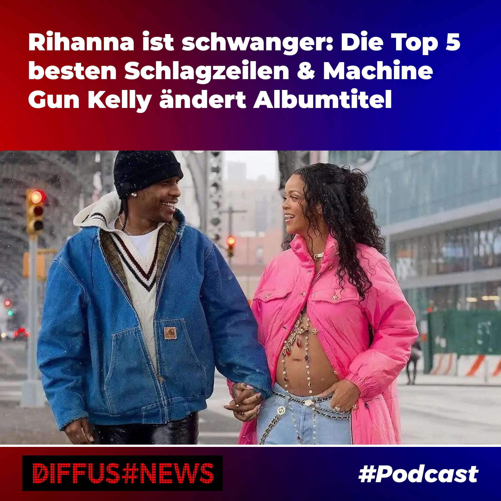Die Themen der Folge: Rihanna ist schwanger. Das sind unsere „Top 5 Schlagzeilen“ rund um Rihannas Schwangerschaft. Bosse startet seinen Podcast „LECKER MITTACH“ und Machine Gun Kelly ändert den Titel seines neuen Albums und das, obwohl er sich den bisherigen Namen gemeinsam mit Travis Baker tätowieren ließ.