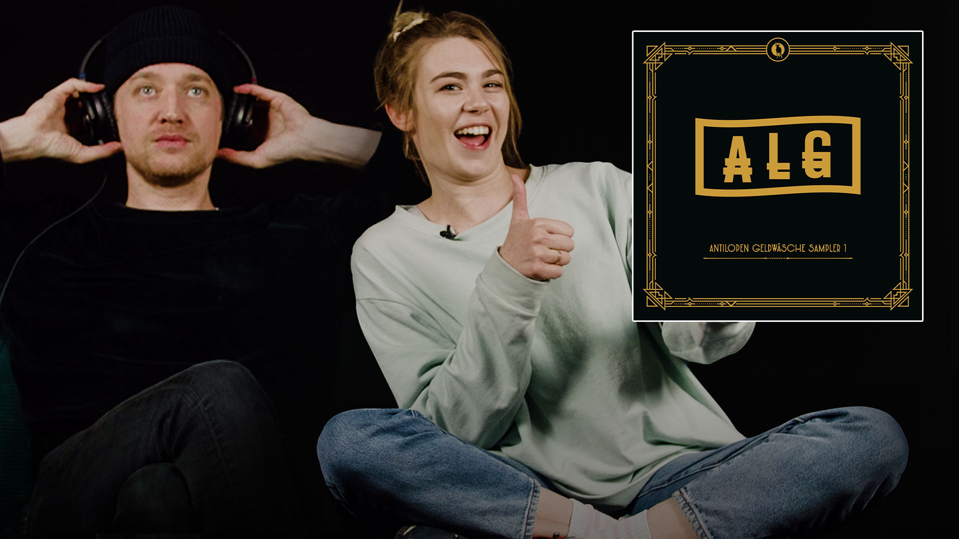 Die Antilopen Gang veröffentlicht am 24. Dezember 2021 ihren „Antilopen Geldwäsche Sampler 1“. Maeckes und Ronja von Rönne reagieren im Video auf die Platte.
